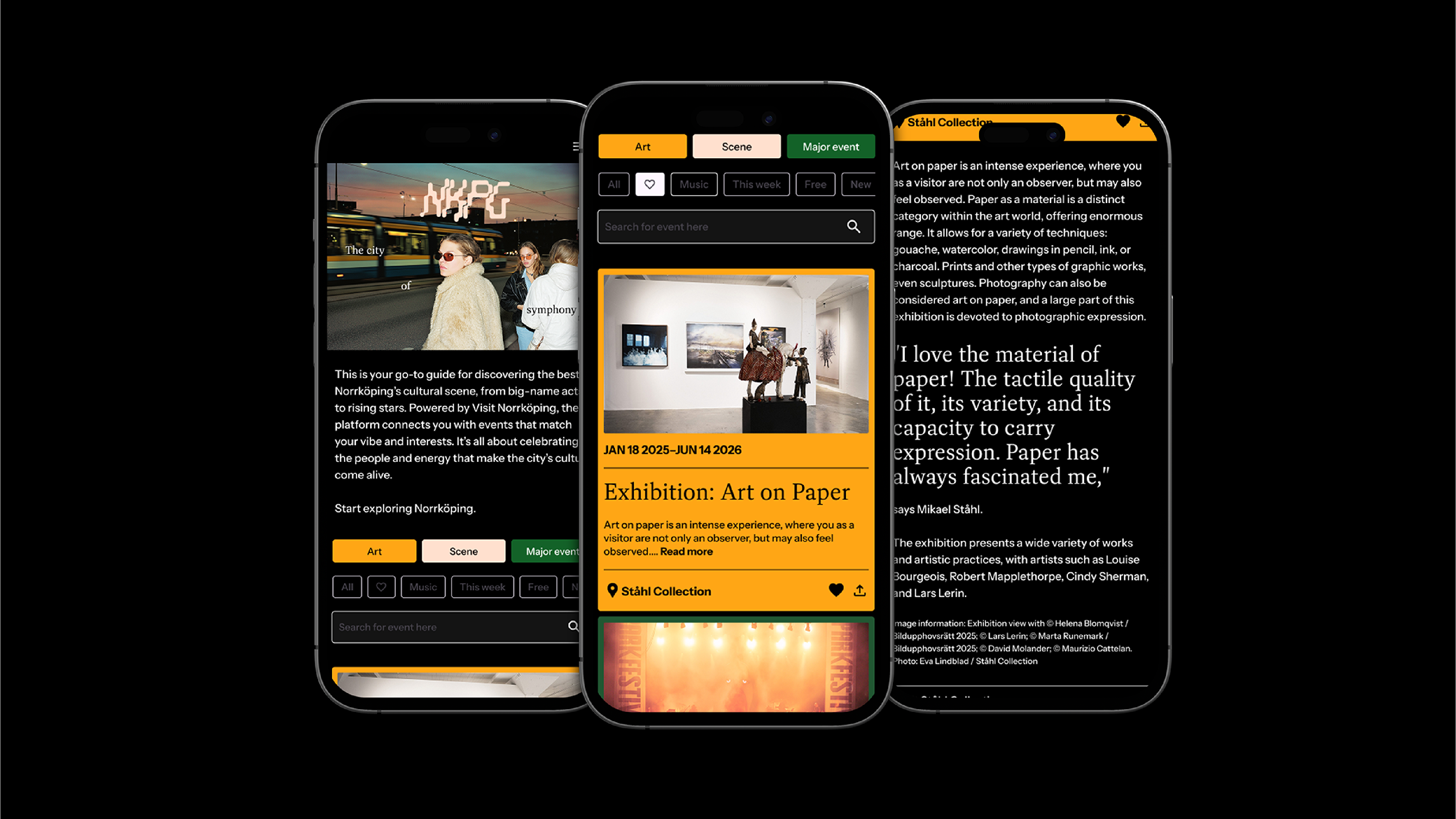 The task was to repackage Norrköping’s entire cultural offering into a single, living platform. One that could inspire locals, attract visitors from Stockholm, and reflect a modern, creative city with its own beat. The challenge wasn’t just strategic, it was emotional. The design had to rebuild trust and pride through a voice that felt bold, human, and unexpected.
